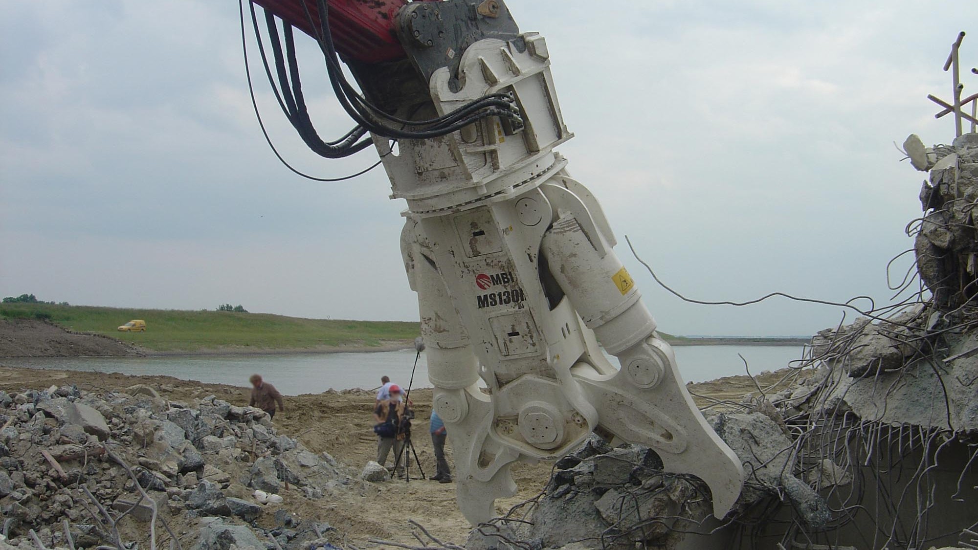 The MS130 is simply the biggest demolition multisystem on the earth. Designed for excavators ranging from 120 to 160 tons, its versatility features are fantastic. The MS130 is a huge tool and thanks to its 3 different jaws sets, it can be easily configured to demolish concrete structures and to cut metal beams.