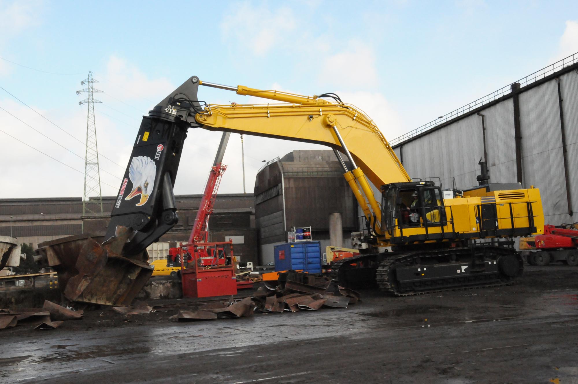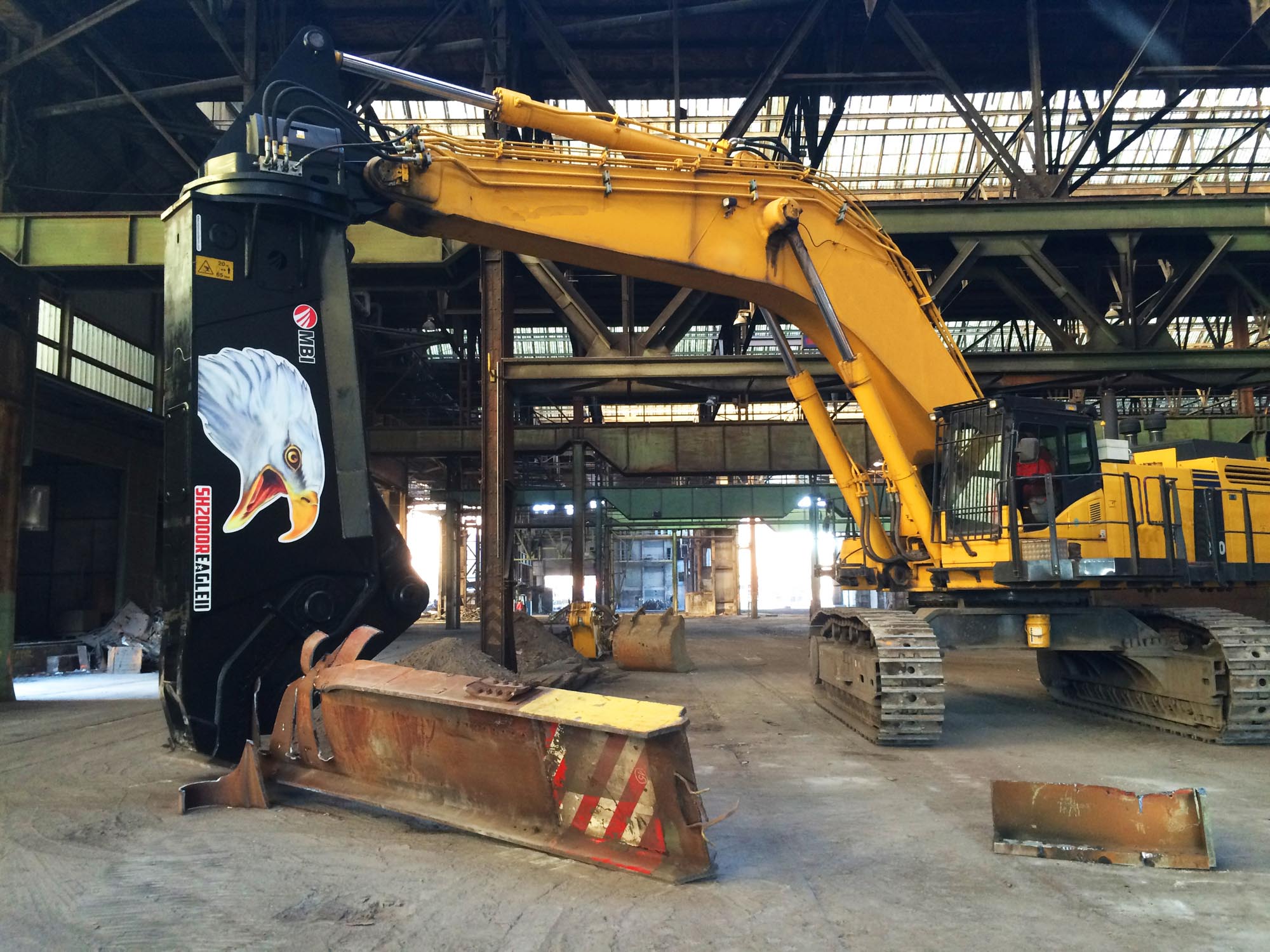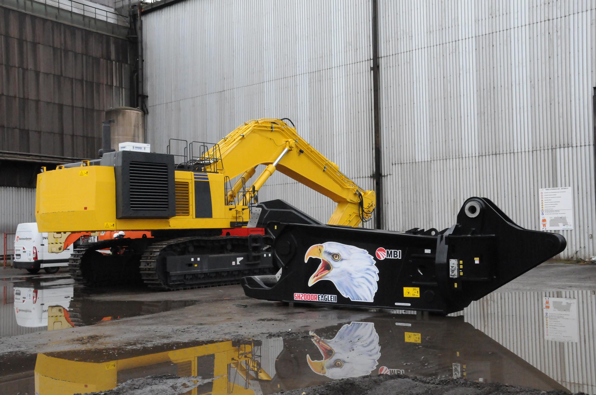 With a length over 6 meters and weighting more than 21 tons, the SH2000 is obviously the biggest of the Eagle II family, but it is also one of the biggest metal shears on the earth. It is designed for huge excavators weighing at least 100 ton, up to 200. In fact, the first model built in 2012, has been equipped on a 120-ton Komatsu PC1250 to fully demolish a steel mill.
