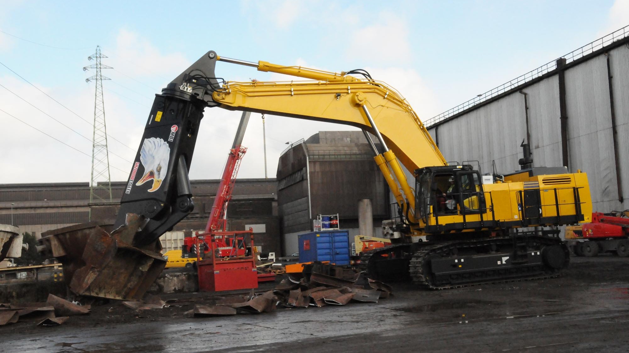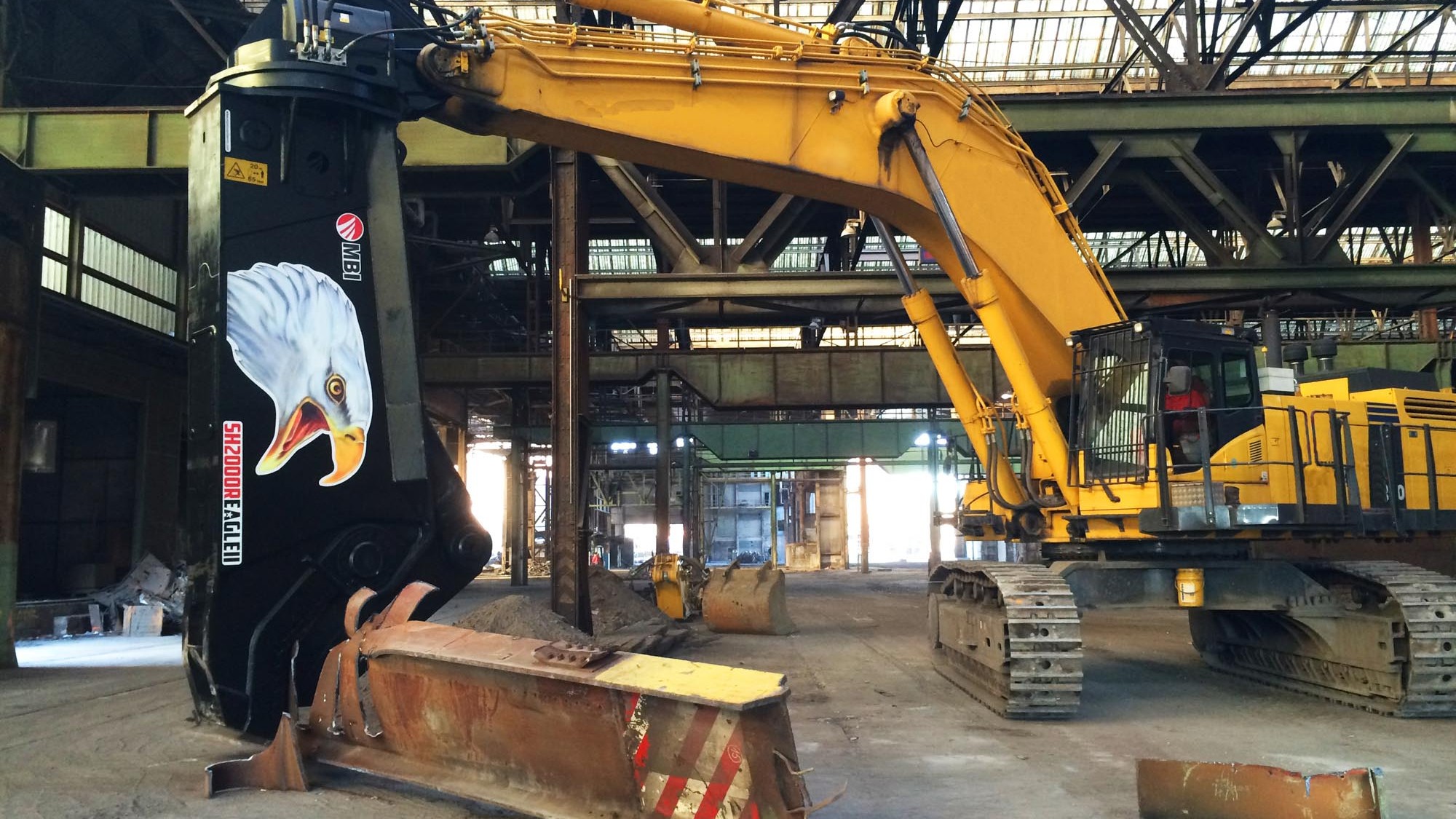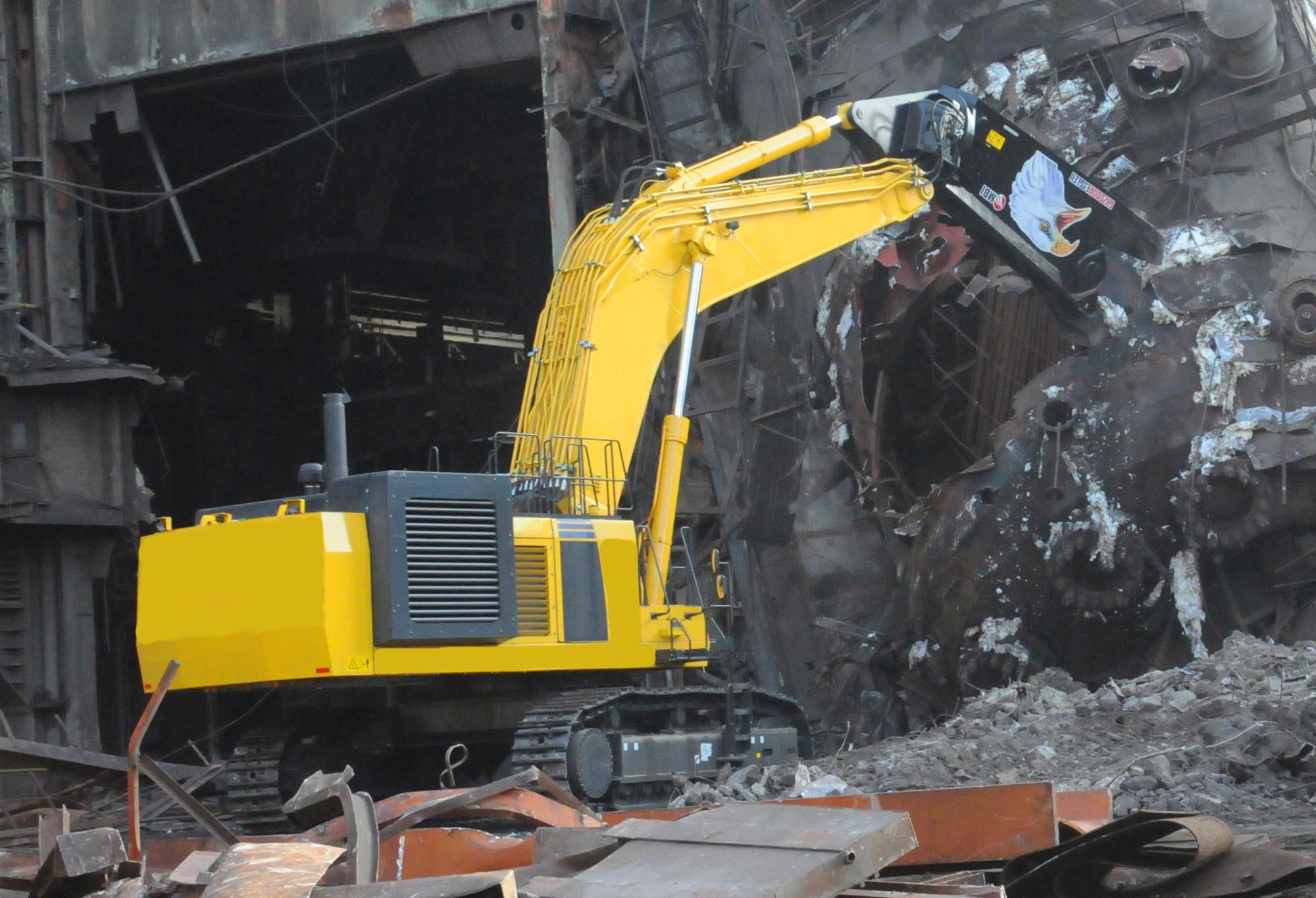 With a length over 6 meters and weighting more than 21 tons, the SH2000 is obviously the biggest of the Eagle II family, but it is also one of the biggest metal shears on the earth. It is designed for huge excavators weighing at least 100 ton, up to 200. In fact, the first model built in 2012, has been equipped on a 120-ton Komatsu PC1250 to fully demolish a steel mill.