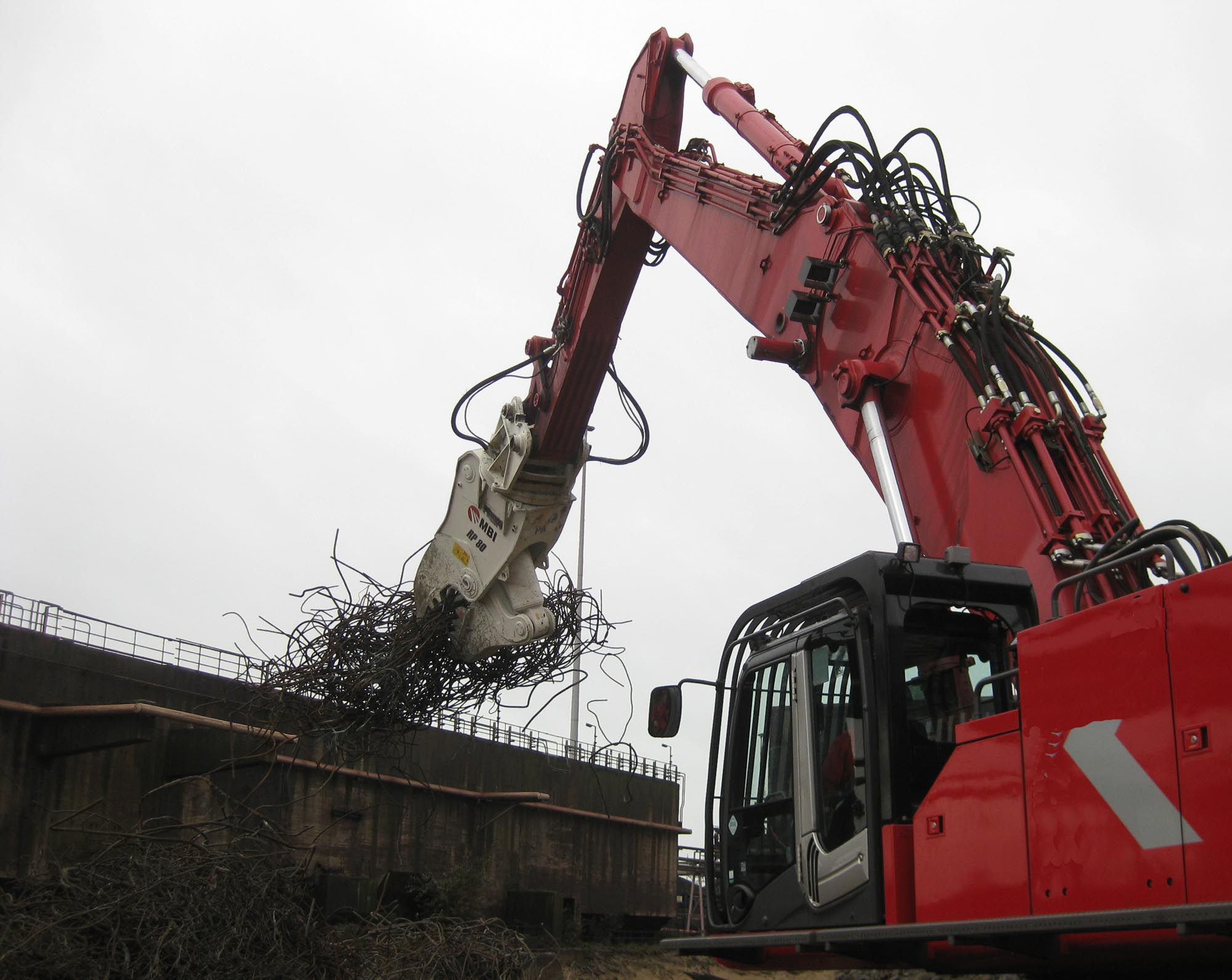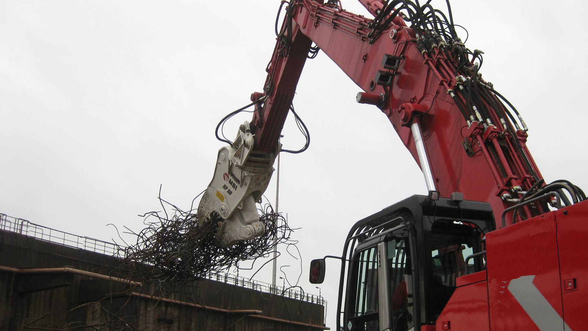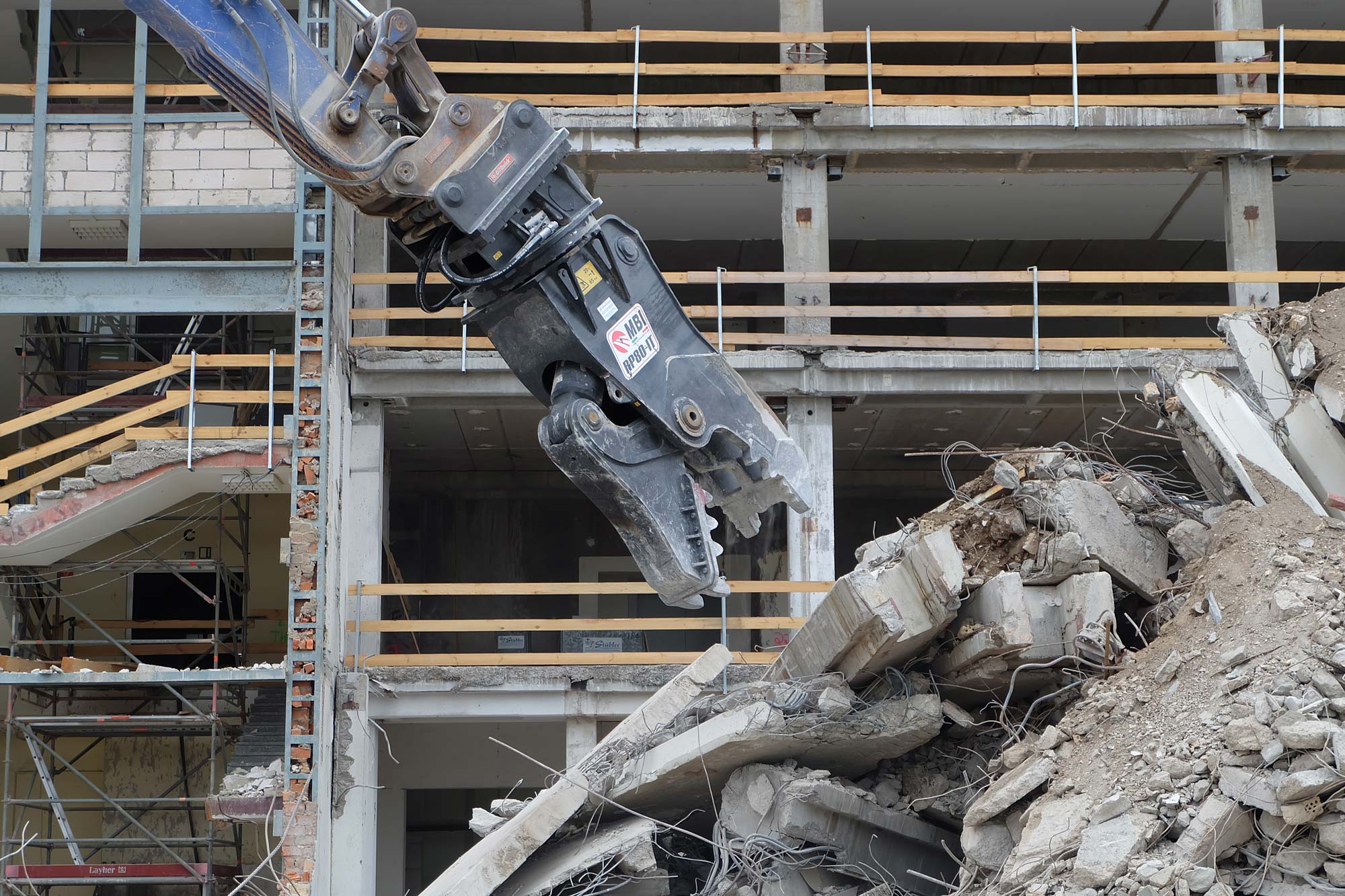 The RP80-IT is an impressing rotating pulverizer designed to knock down huge reinforced concrete structures and prepare the resulting materials for recycling.